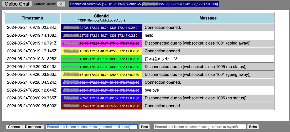 % grpcurl -v -d '{"repeat":"2","sleep":"0-30000"}' -insecure gelbo-xxxxxxxxx.ap-northeast-1.elb.amazonaws.com:443 elbgrpc.GelboService.ServerStream